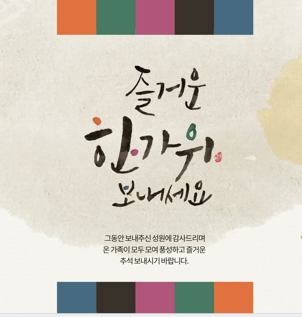 그 동안 보내주신 성원에 감사드리며 온 가족이 모두 모여 풍성하고 즐거운 추석 보내시기 바랍니다.